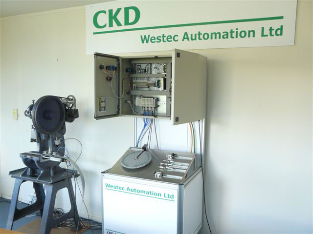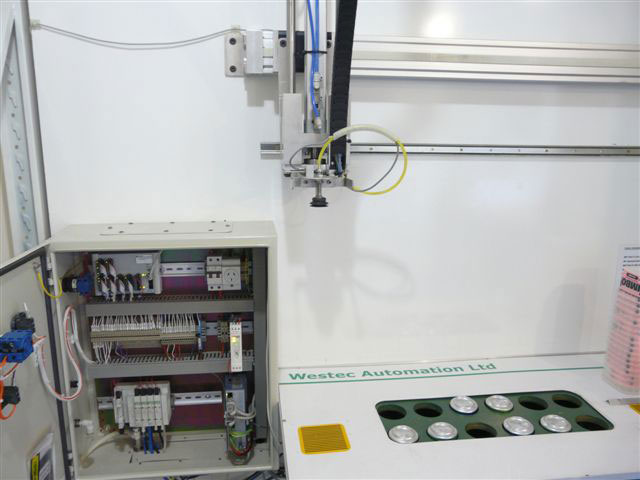 A stock control system typically involves the combination of a PLC unit, a low voltage power supply, a bank of pneumatic valves and all the input/output fixed wiring.
